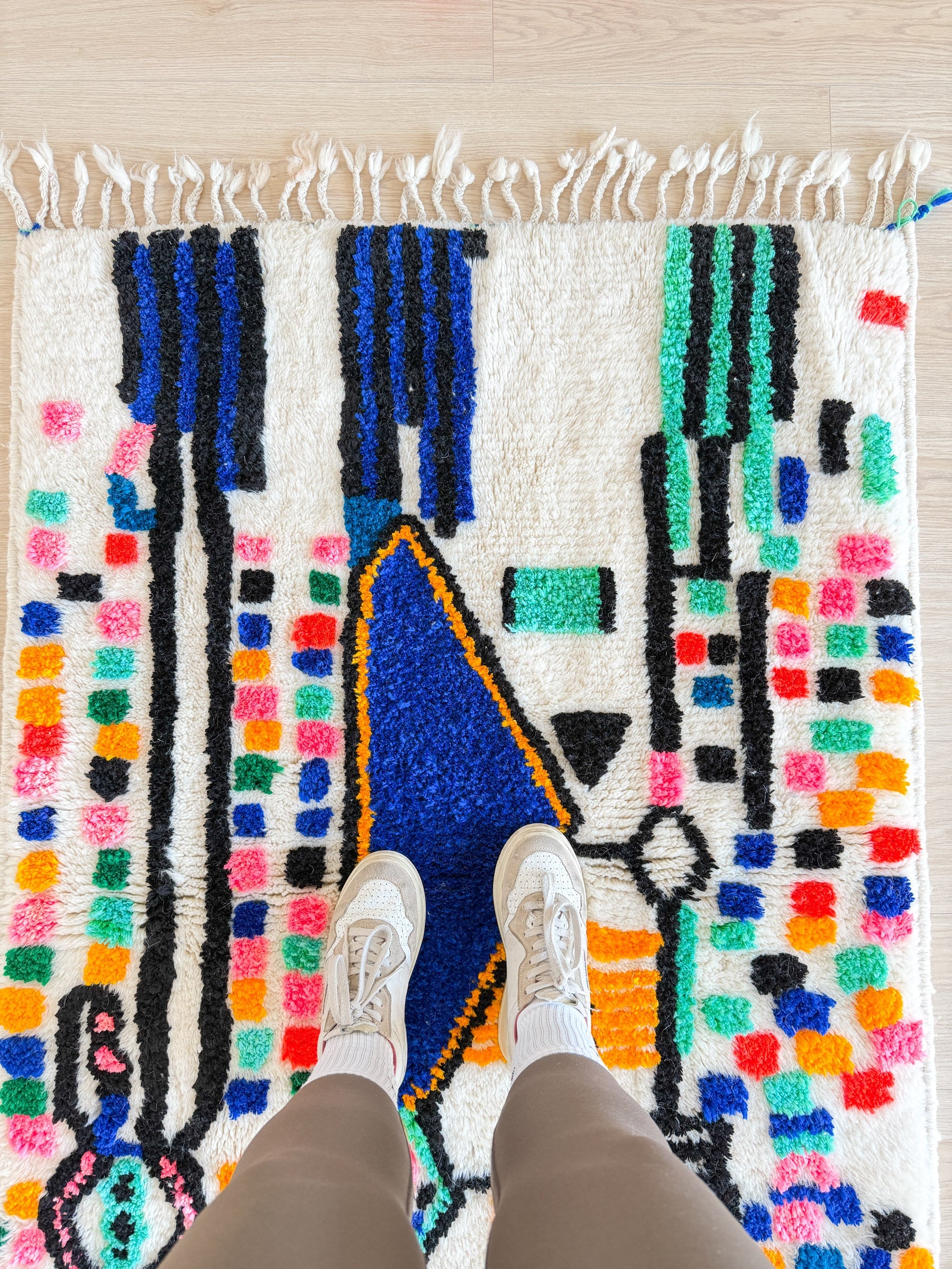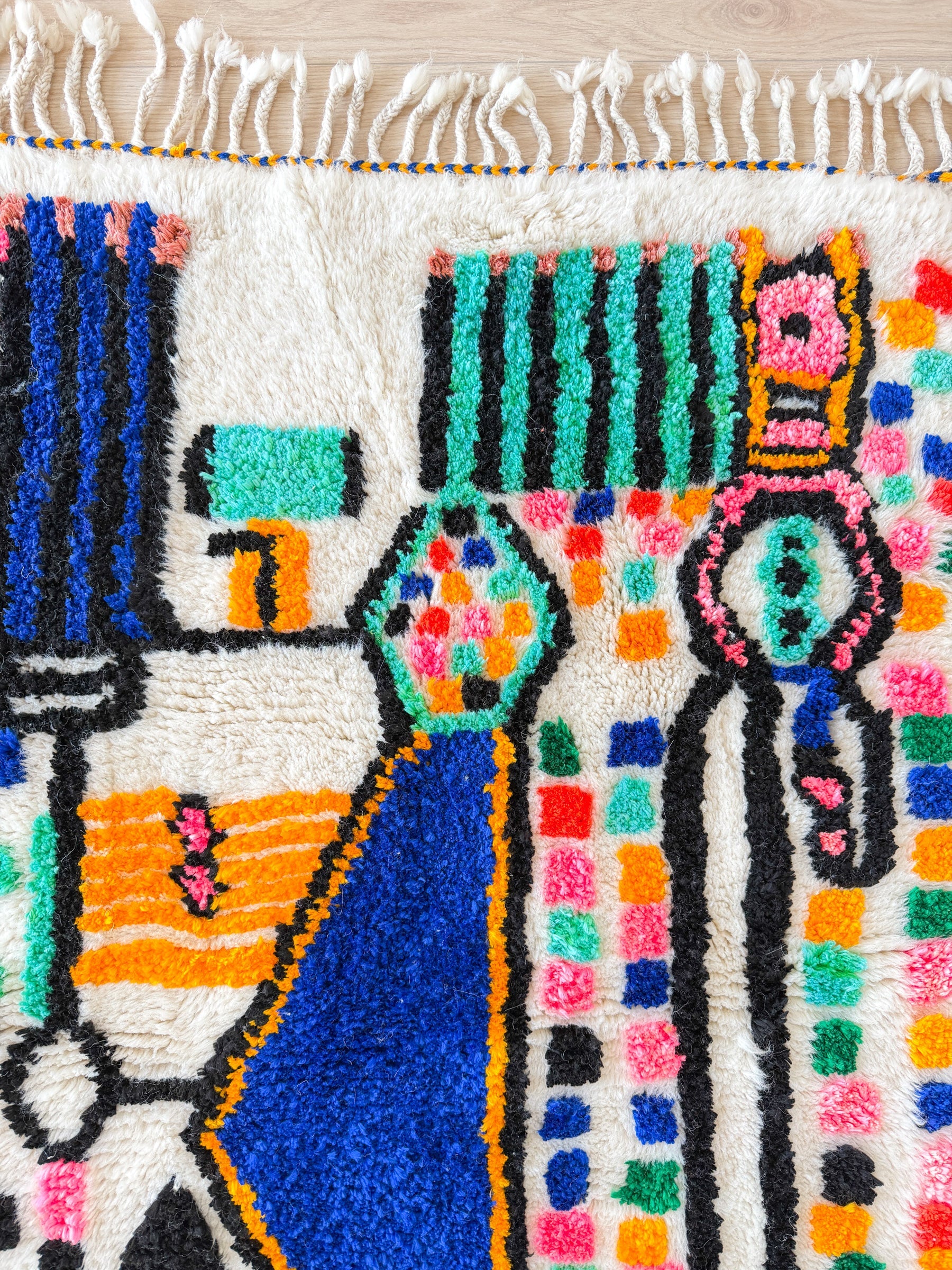 This colorful Berber rug , handmade in the Atlas Mountains, blends tradition and creativity with its unique, vibrant patterns. Crafted from natural wool and cotton, it brings a warm and inviting touch to your home. Ideal for those who appreciate bold décor, this rug reflects Moroccan craftsmanship in all its splendor.
