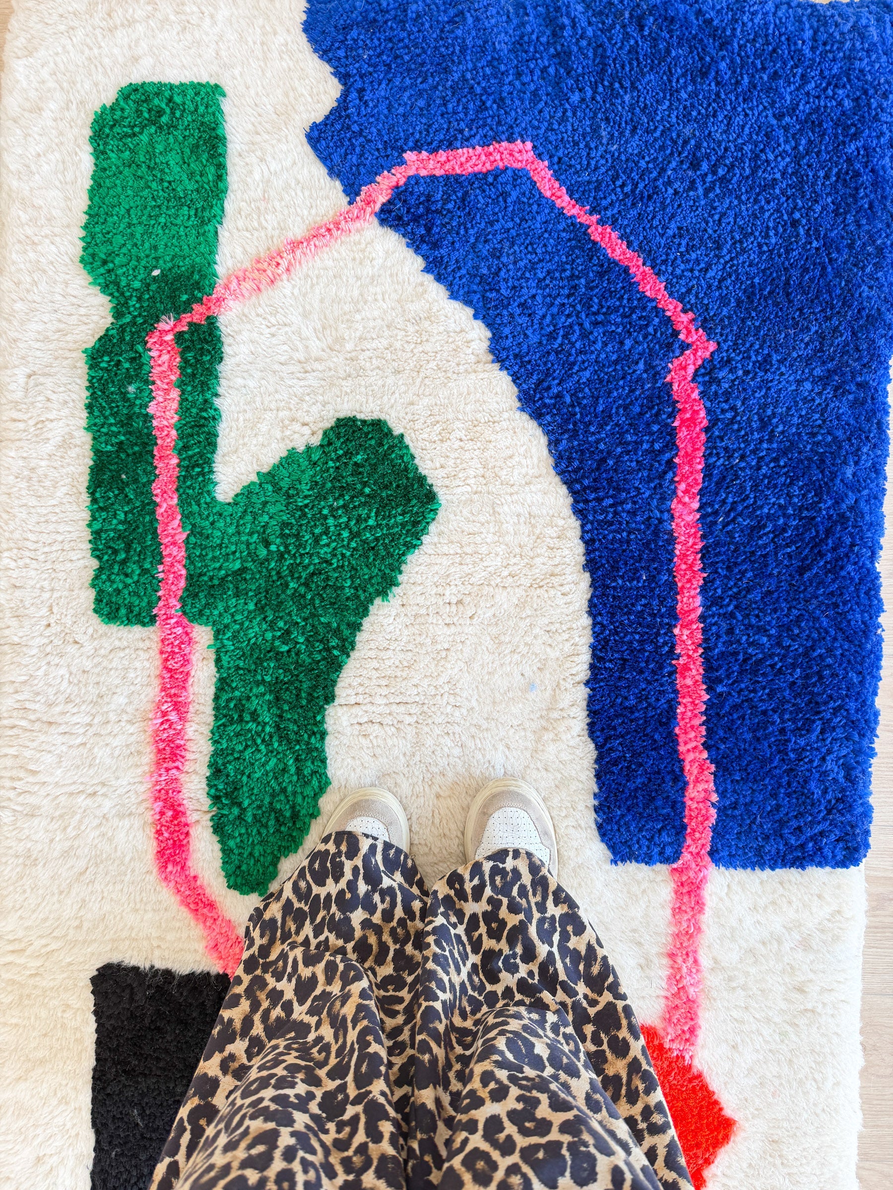 This colorful Berber rug , handmade in the Atlas Mountains, blends tradition and creativity with its unique, vibrant patterns. Crafted from natural wool and cotton, it brings a warm and inviting touch to your home. Ideal for those who appreciate bold décor, this rug reflects Moroccan craftsmanship in all its splendor.