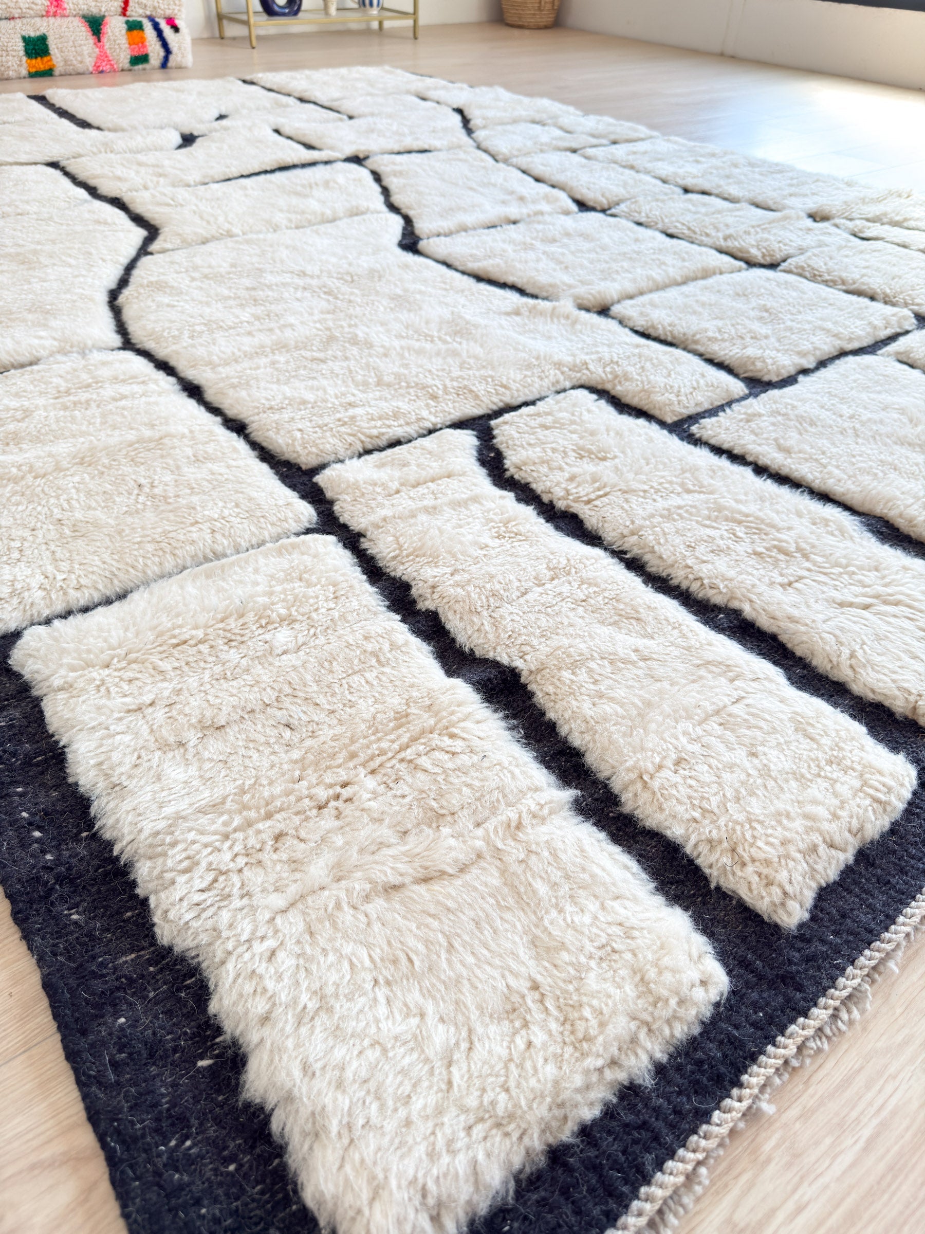 This luxurious M'rirt rug , 100% wool and handwoven in Morocco, is synonymous with refinement and superior quality. Made from exceptionally dense natural wool , it offers a soft and plush texture, ideal for an elegant and cozy interior. Its meticulous finish makes it a timeless centerpiece to enhance your living spaces.
