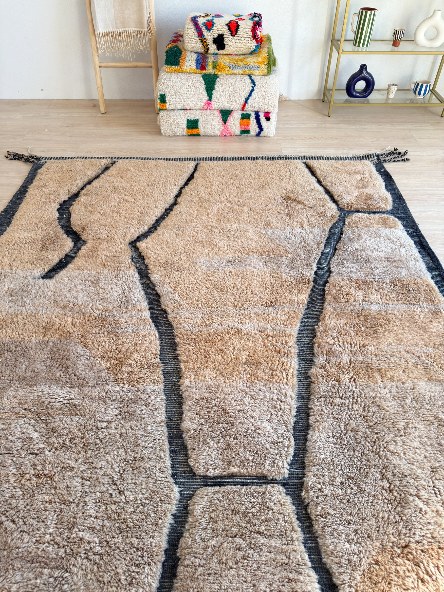 This luxurious M'rirt rug , 100% wool and handwoven in Morocco, is synonymous with refinement and superior quality. Made from exceptionally dense natural wool , it offers a soft and plush texture, ideal for an elegant and cozy interior. Its meticulous finish makes it a timeless centerpiece to enhance your living spaces.