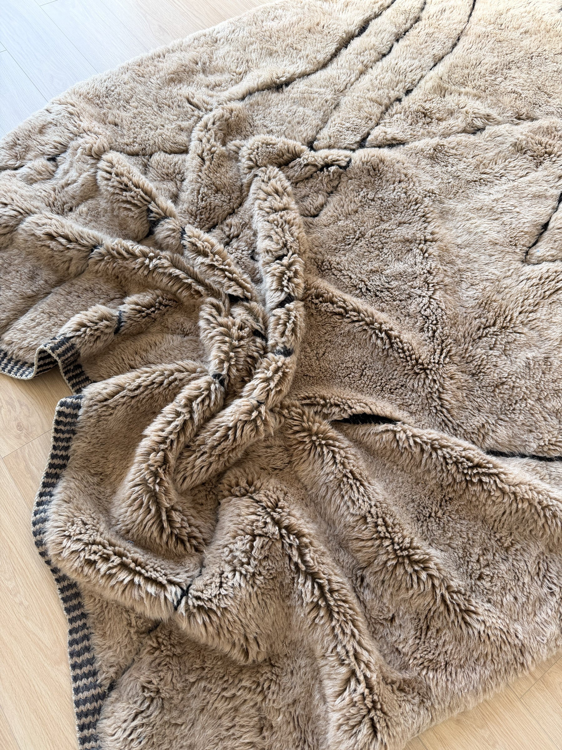 This luxurious M'rirt rug , 100% wool and handwoven in Morocco, is synonymous with refinement and superior quality. Made from exceptionally dense natural wool , it offers a soft and plush texture, ideal for an elegant and cozy interior. Its meticulous finish makes it a timeless centerpiece to enhance your living spaces.